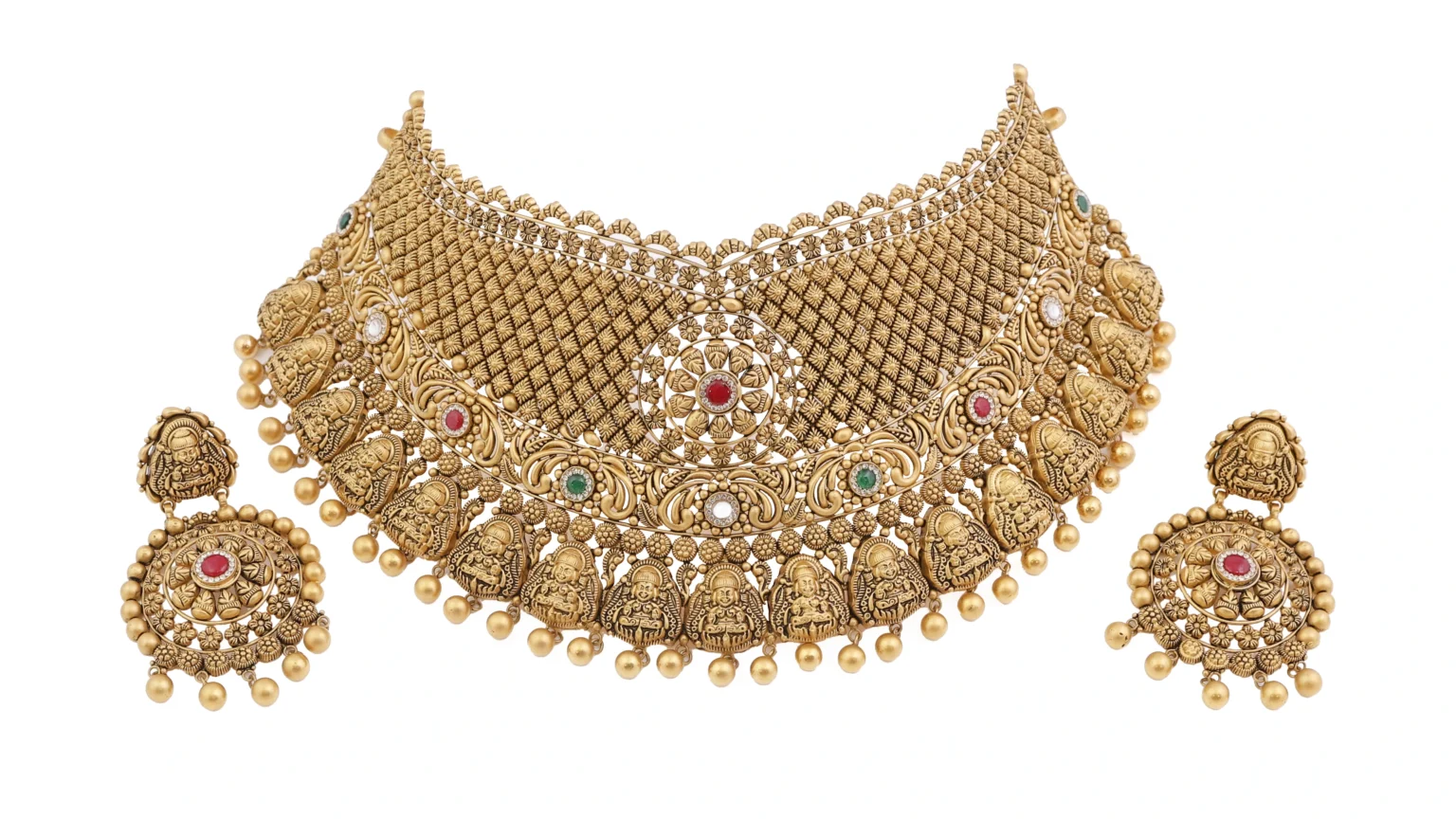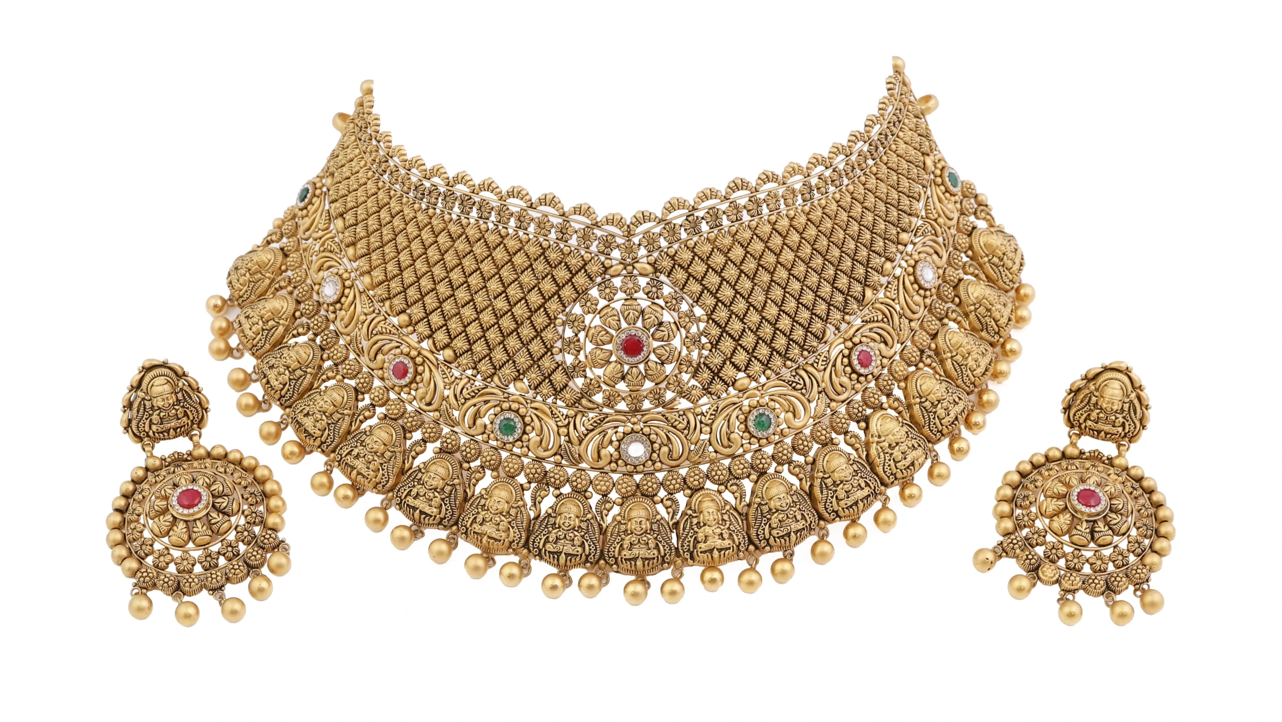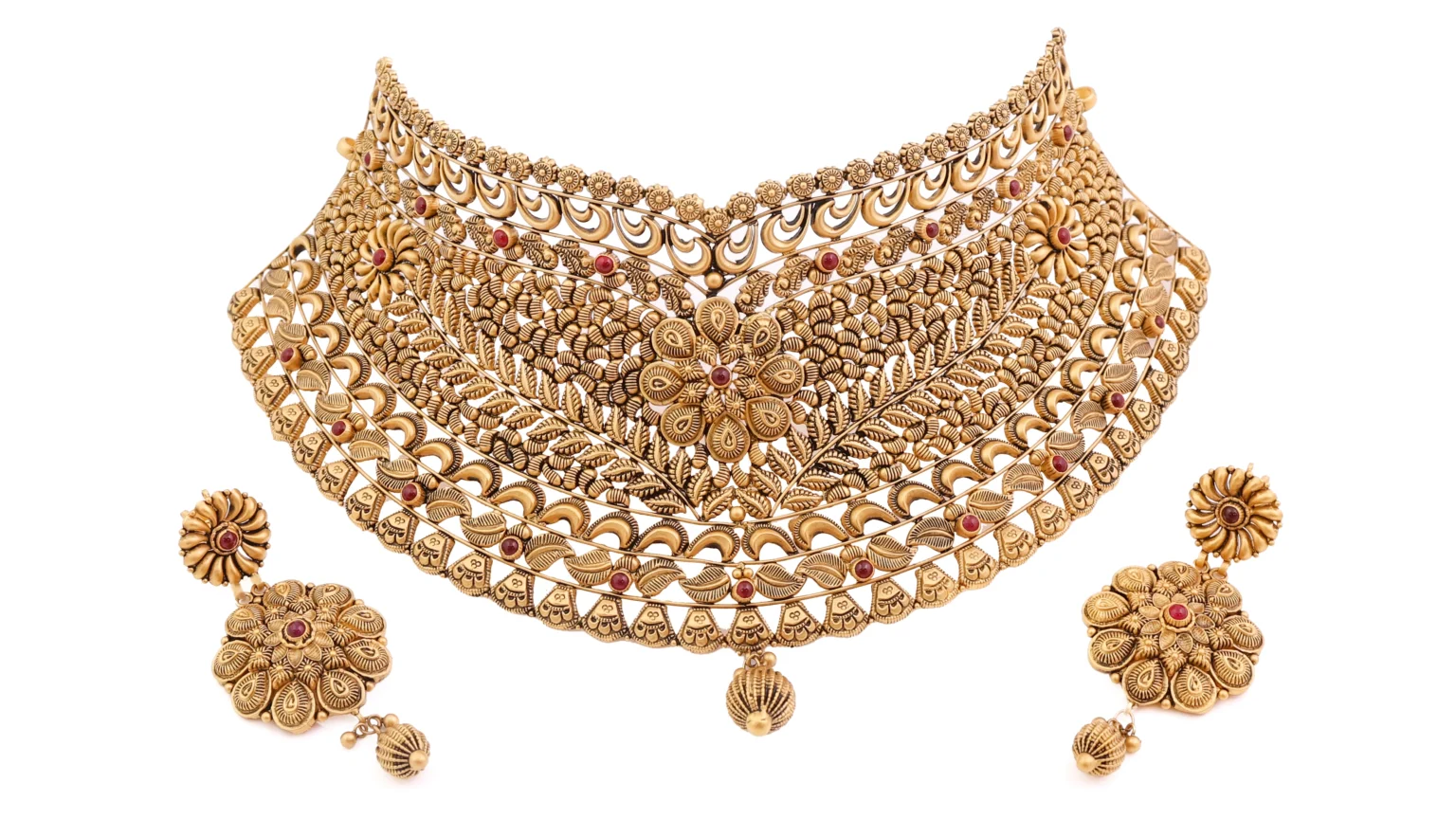Complete jewellery sets including necklaces, earrings, and matching accessories are photographed to showcase their harmony and luxurious appearance.