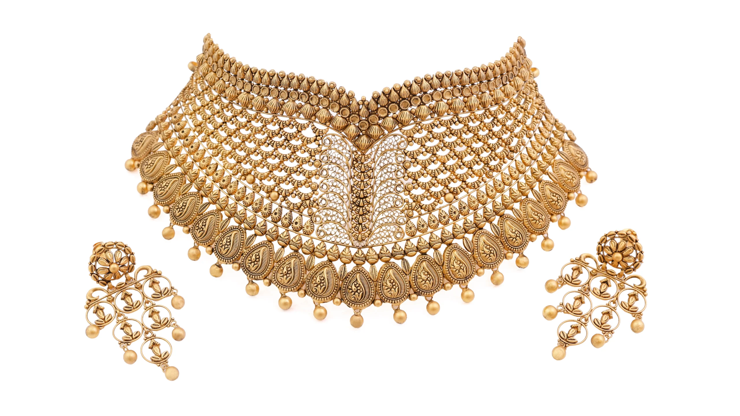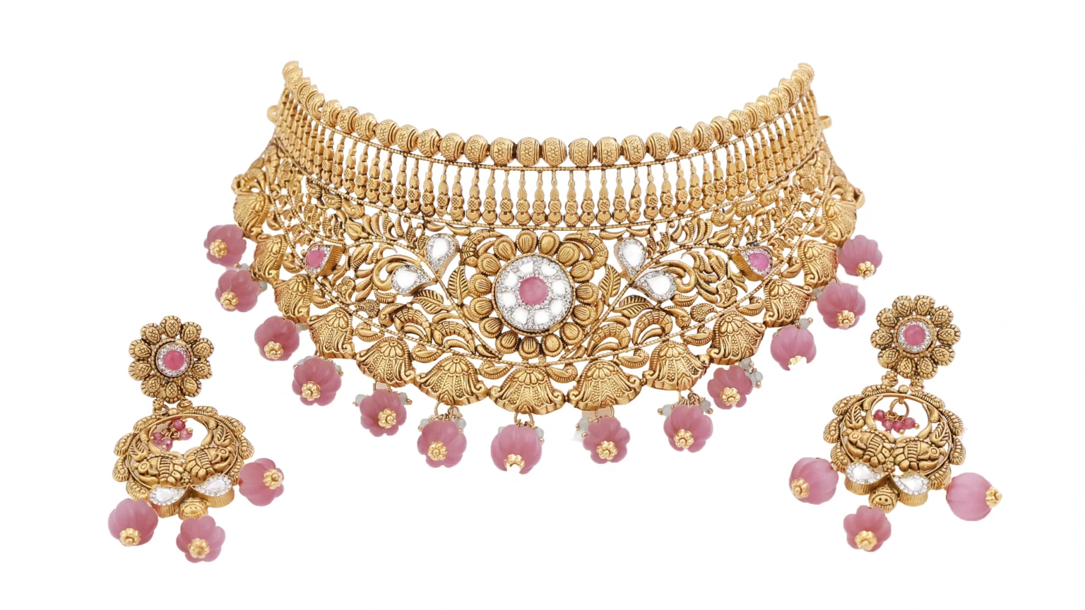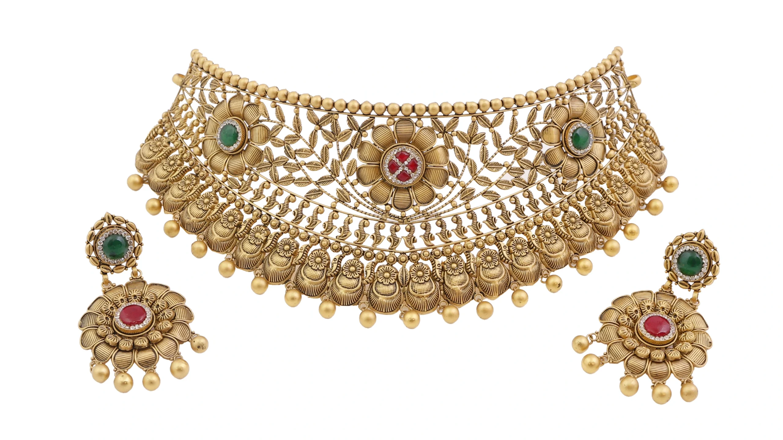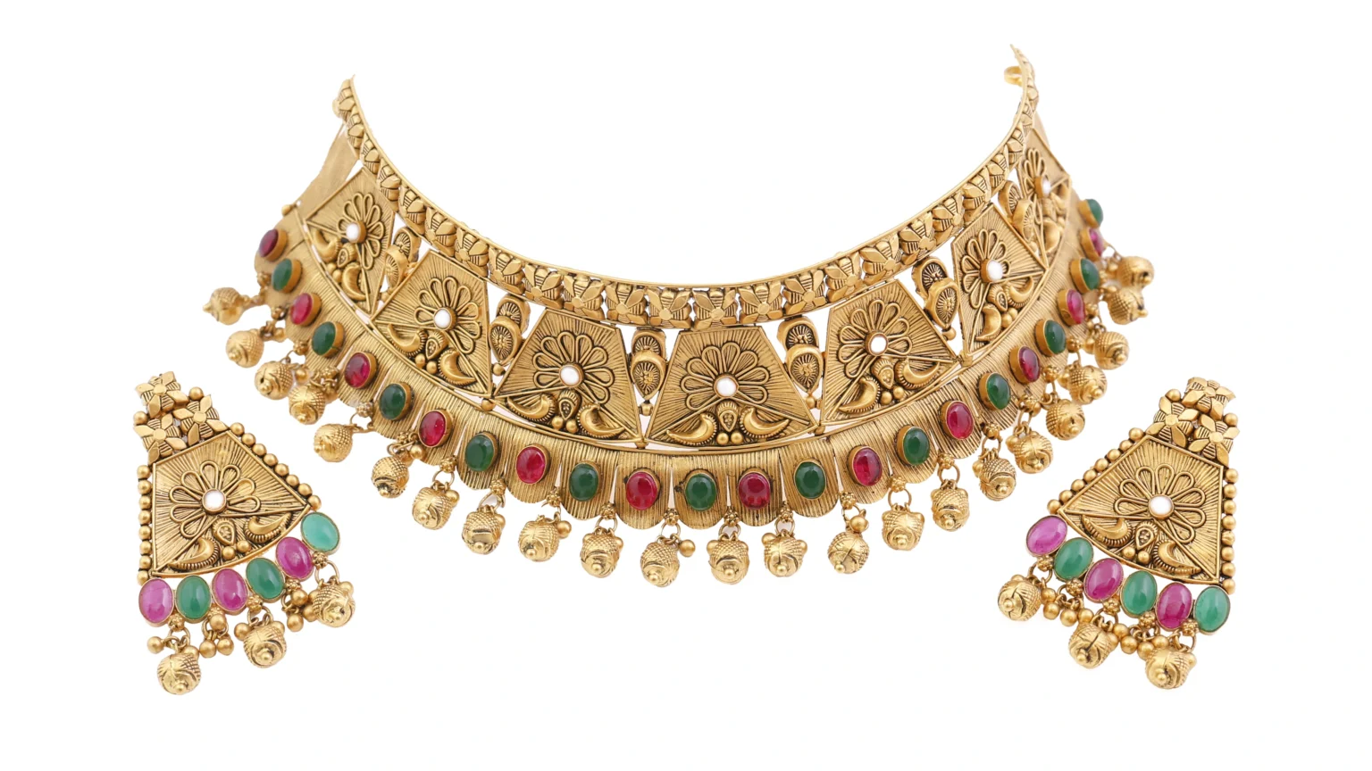 Complete jewellery sets including necklaces, earrings, and matching accessories are photographed to showcase their harmony and luxurious appearance.